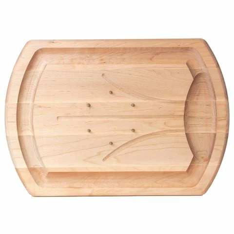 The Maple Carving Board with Spikes is perfect for those grillers, smokers and tailgaters that are carving up a lot of meat at one time. The spikes keep the meat in place while carving. The tree and well juice grooves allow the juices to flow with ease into the well.
