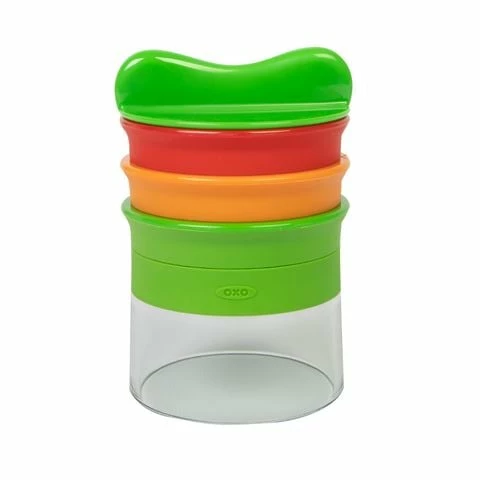 Create three different sizes of vegetable noodles in a snap with OXO’s 3-Blade Hand-Held Spiralizer. From zucchini “pasta”, to beet salad, to potatoes au gratin, these uniform spirals are easy to make, fun and delicious. This Spiralizer comes with interchangeable Spaghetti Cut (1/8-in), Fettuccine Cut (1/4-in) and Ribbon Cut blades that store on board. The open-blade design accommodates both long and round vegetables, and the food holder keeps hands safe and is easy to grip while turning down to the end of vegetables to minimize waste. The BPA-free Hand-Held Spiralizer is dishwasher safe and the food holder acts as a cap for safe storage.