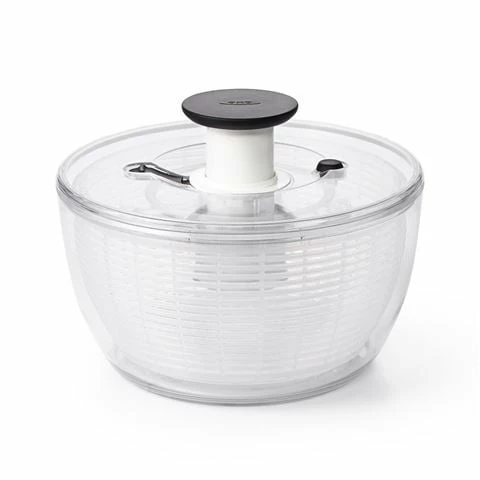 The Good Grips Salad Spinner 4.0 by Oxo is made from durable materials, and can be used to rinse and soak, spin and dry, toss and serve, and stack and store your vegetables.